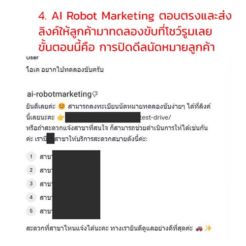 สำหรับช่วยตอบลูกค้าในสายรถยนต์ เชิญลูกค้ามาทดลองขับได้ที่โชว์รูมใน 4 ขั้นตอน